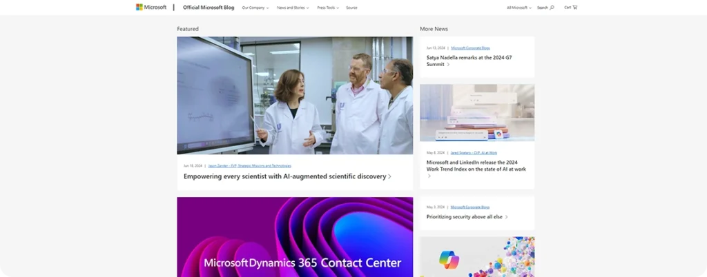 El blog de Microsoft es un claro ejemplo de cómo WordPress puede ser utilizado por grandes corporaciones para manejar contenido de manera efectiva. Este sitio destaca por su diseño profesional y su capacidad para manejar una gran cantidad de información de manera organizada.